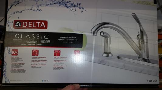 Delta 400 dst l classic single handle kitchen faucet with spray chrome.